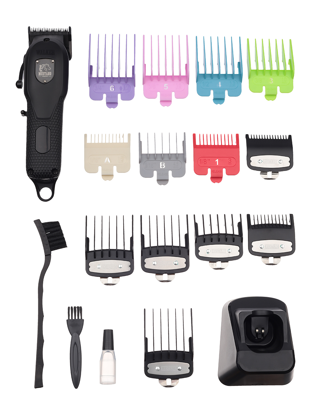 WALKER идеально подойдёт для стрижек в технике фейд. Удобнейшая регулировка высоты среза от 0.3 до 2 мм + 14 насадок в комплекте! 8 цветных 1.5 - 19 мм и 6 премиум с металлическим креплением 1.5 - 12 мм. Вы сможете работать с волосами разной длины и создавать дымчатые переходы!