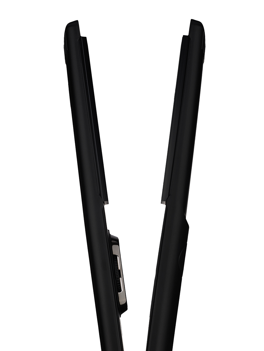 Узкие пластины 100 × 23 мм дают полный контроль над прядью. Вы без труда прорабатываете труднодоступные участки — у корней, в зоне висков и за ушами. Плавающие пластины деликатно прижимаются к волосу, не обжигая его и обеспечивая равномерное гофре без заломов.